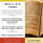 Rabbi Natasha’s Isaiah Class, Mondays at 6:30pm and Rabbi Jeremy’s Midrash Class, Tuesdays at 12:30pm both on Zoom.
